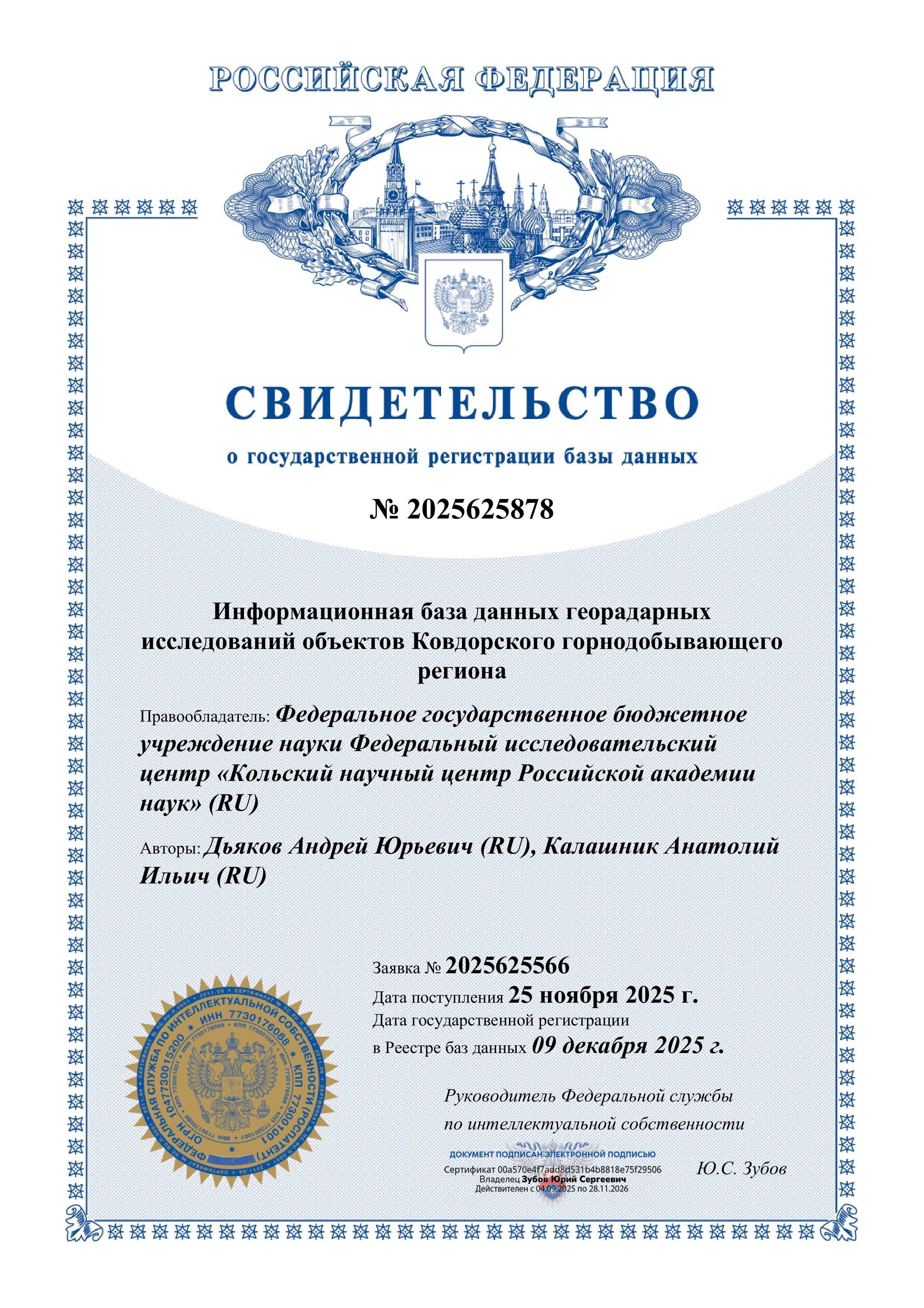 Информационная база данных георадарных исследований объектов Ковдорского горнодобывающего региона
