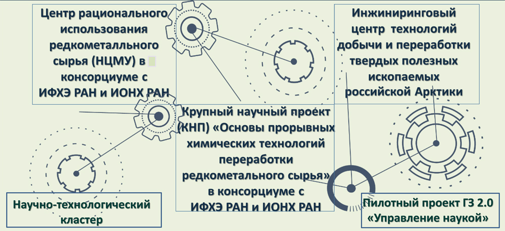 Институт очень востребован в кросс-функциональном взаимодействии с другими подразделениями Кольского научного центра. Кипит работа над крупным научным проектом «Основы прорывных химических технологий переработки редкоземельного сырья» и пилотным проектом «Управление наукой», для которого сотрудники института разработали способы выделения марганца и вольфрама из титано-магнетитового концентрата АО «Апатит». Двадцать три сотрудника вовлечены в работу Центра рационального использования редкоземельного сырья: готовят планы исследований и дорожную карту на 2025-2030 годы, выбирают, заказывают и устанавливают оборудование, необходимое для выполнения исследований. И конечно же, занимаются научной работой.