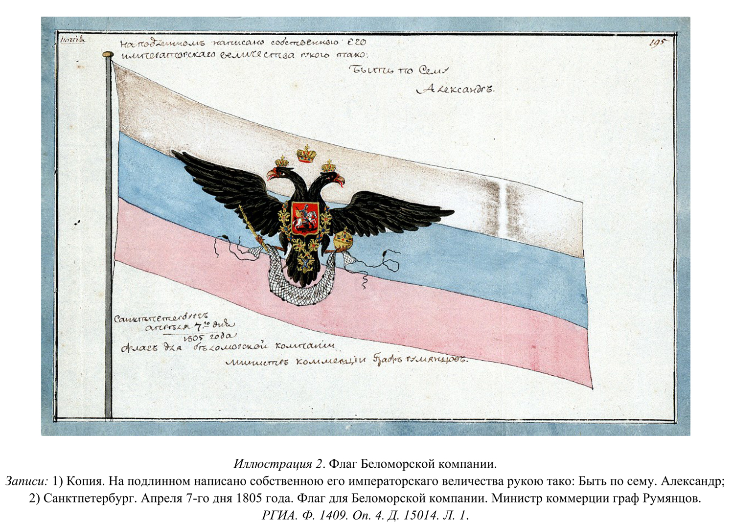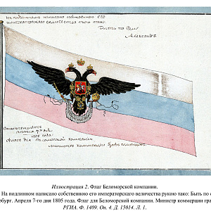 Среди иллюстраций мы находим портрет графа Румянцева, рисунок самого брига (предположительно), флаг Беломорской компании, чертежи поморских судов, жалобу командора Даля на правителя Беломорской компании Власа Ермолина и план Екатерининской гавани, где проходила подготовка «Графа Румянцева» ко второму вояжу.