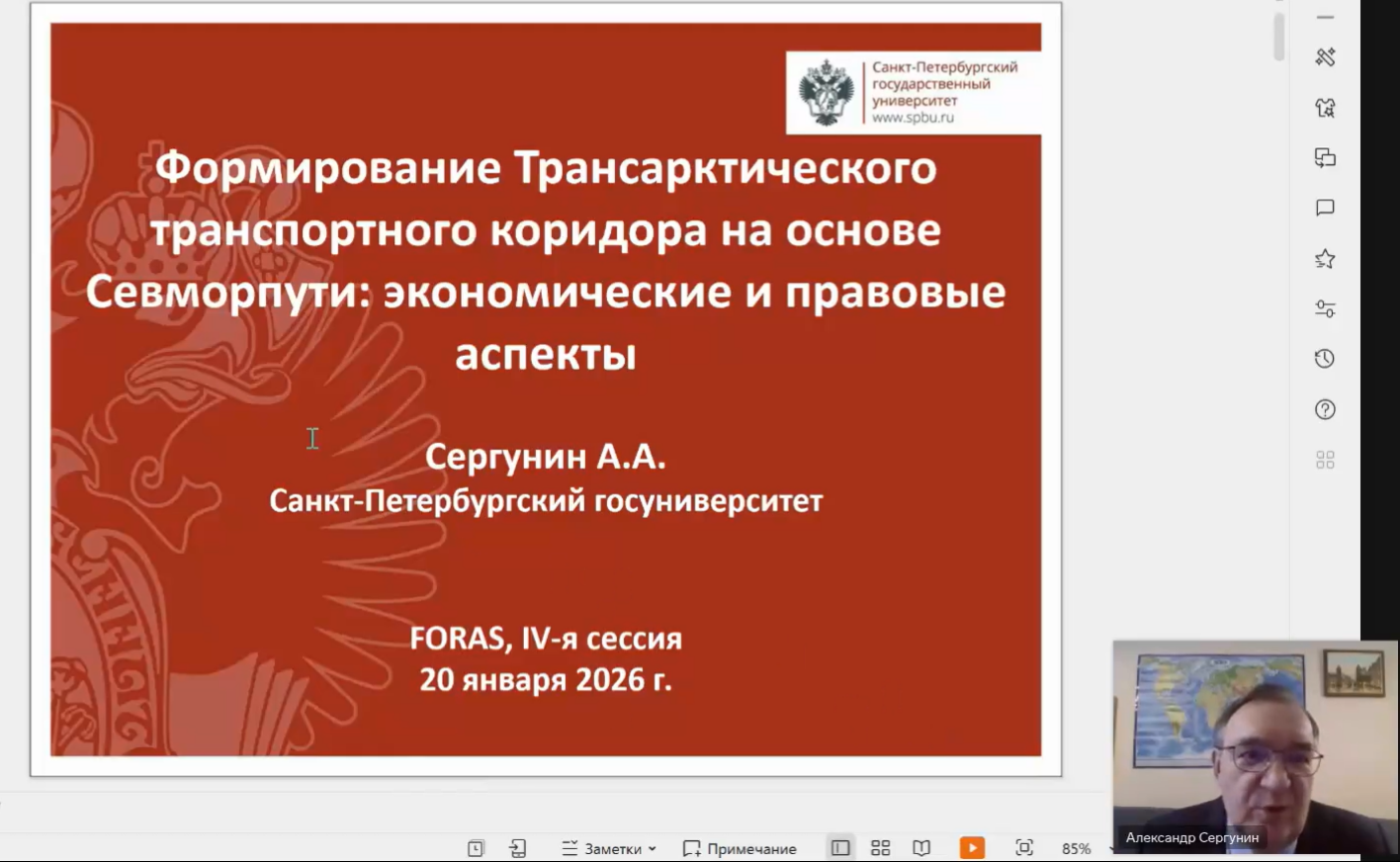 Новый 2026 год для проекта «Из Арктики для Арктики: научная дипломатия для устойчивого будущего региона и его жителей – FORAS», выполняемого в рамках Международного десятилетия наук в интересах устойчивого развития под эгидой ЮНЕСКО, открылся очередной онлайн сессией. 20 января участники обсудили будущее Трансарктического транспортного коридора как важной инфраструктурной артерии российской Арктики.