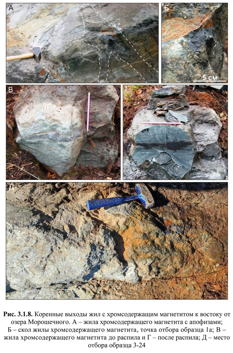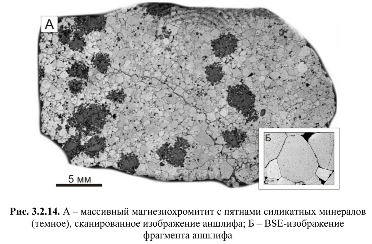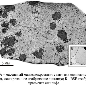 Вторая глава посвящена Сопчеозерскому месторождению хрома. В ней рассмотрены история открытия объекта и его геологическое строение, условия формирования и химические особенности рудного магнезиохромита. Авторы детально сравнивают состав рудной фазы с акцессорными хромшпинелидами вмещающих дунитов и пород Мончетундровской интрузии, демонстрируя, что рудный магнезиохромит кристаллизовался из более примитивного расплава и не может быть объяснен простым механическим накоплением акцессорных зерен.
