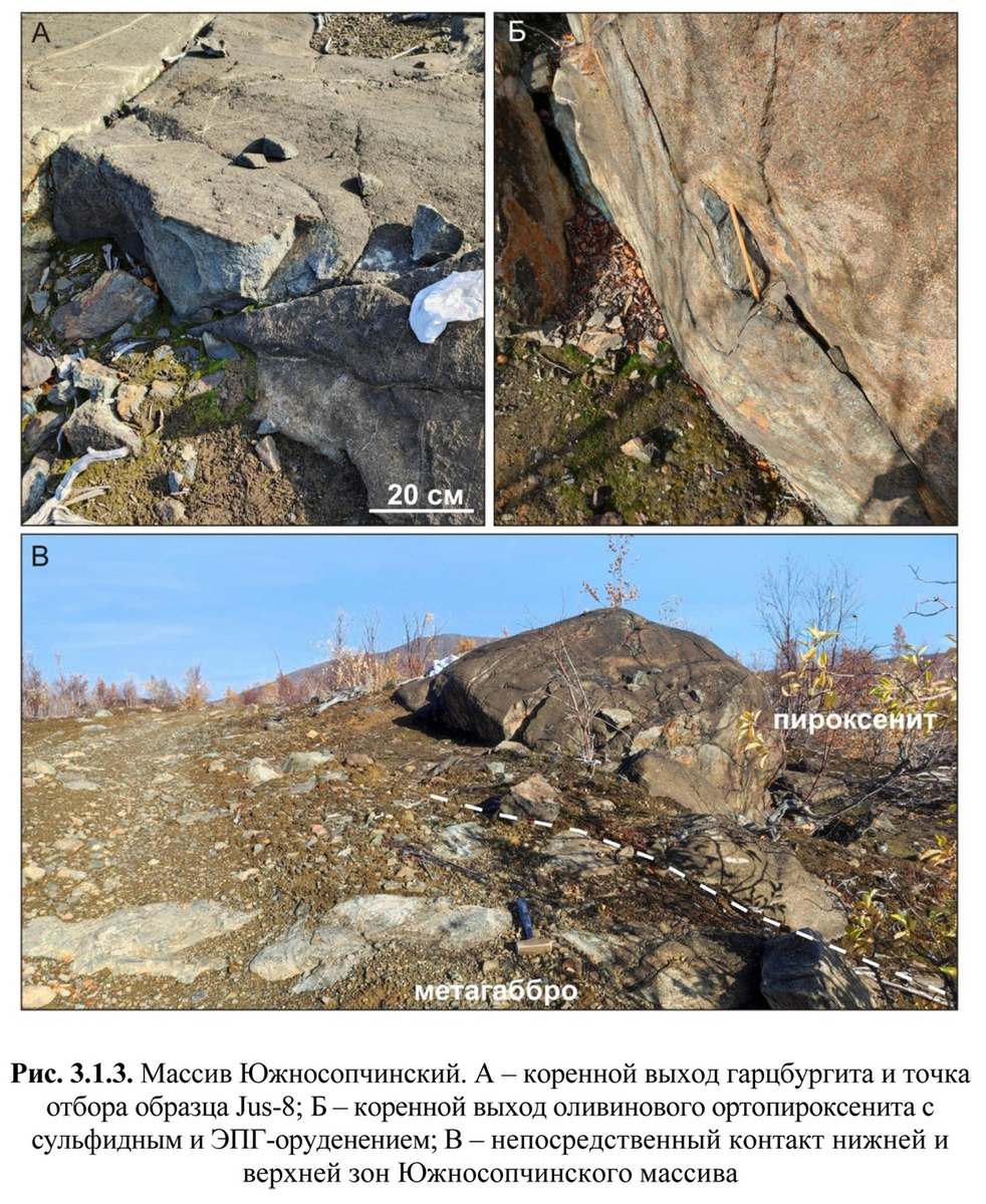 Основу монографии составляет третья глава. В ней последовательно охарактеризованы акцессорные хромшпинелиды четырех детальных участков: Южносопчинского, массивов Ниттис-Кумужья-Травяная (НКТ), Сопча и Нюд-Поаз. На основе микрозондовых и электронно-микроскопических исследований описаны морфология зерен хромшпинелидов, развитие в них позднемагматических железистых кайм и структур распада твердого раствора. Установлено, что составы хромшпинелидов массивов НКТ и Сопча формируют единый эволюционный тренд, что подтверждает их кристаллизацию в общей магматической камере. Массив Нюд-Поаз демонстрирует собственный, более железистый тренд и отсутствие позднемагматической зональности, что может указывать на формирование его пород в обособленной камере. Отдельно проанализированы высокожелезистые и титанистые жильные хромшпинелиды участка Южносопчинский, которые авторы сопоставили с обогащенными железом ультрамафитовыми пегматитами (IRUP) Бушвельдского комплекса.