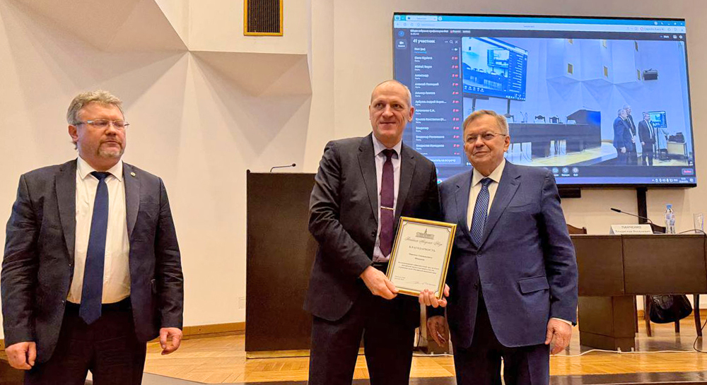 Владислав Панченко вручил дипломы вновь избранным профессорам РАН, а также поощрительные грамоты действующим профессорам, которые принимают активное участие в решении задач, поставленных перед профессорским корпусом. Благодарности за плодотворный добросовестный труд на благо российской науки и активное участие в решении задач Российской академии наук удостоен главный научный сотрудник Института информатики и математического моделирования Кольского научного центра РАН, доктор технических наук Максим Шишаев.