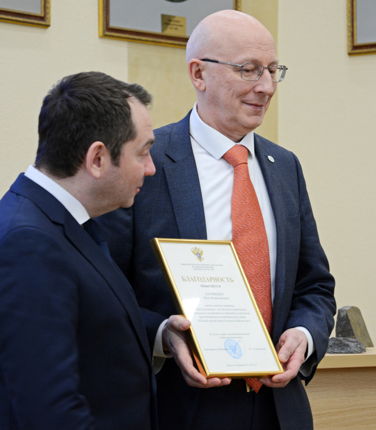 Благодарности федерального министерства науки и высшего образования удостоились главный научный сотрудник Горного института КНЦ РАН Олег Наговицын и ведущий научный сотрудник Геологического института КНЦ РАН Николай Кудряшов.