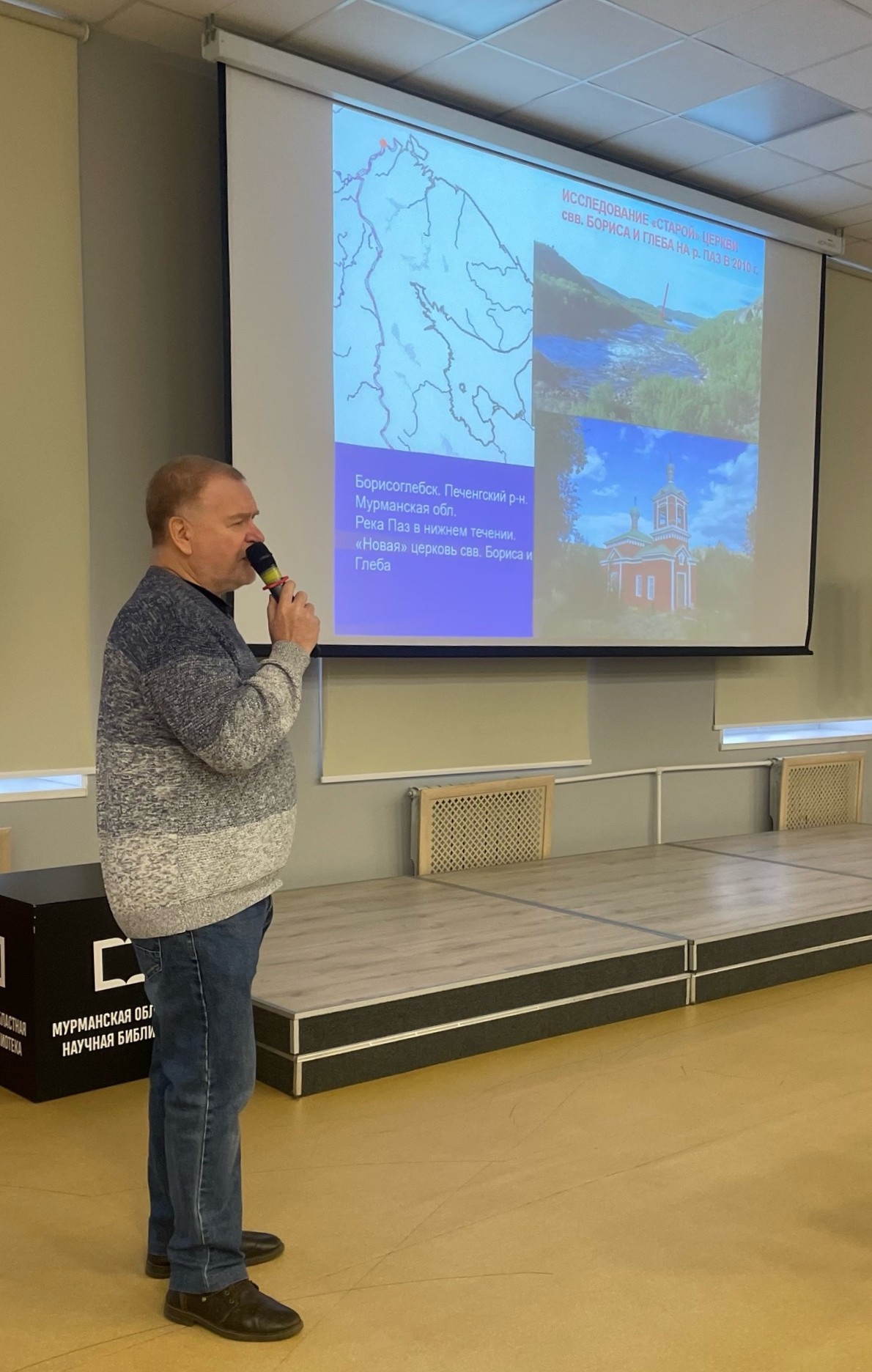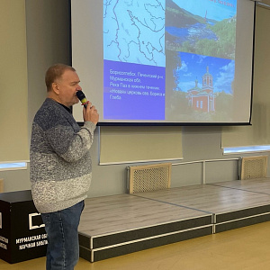 23 октября целиком отвели для детей и молодежи. В Мурманской областной детско-юношеской библиотеке имени В.П. Махаевой в этот день состоялась детско-юношеская секция «История вокруг нас», а в «научке» – научно-просветительский лекторий «Образ родного края». Молодые исследователи представили свои исследования о традиционной культуре северных народов и творчестве современных мурманских авторов, об истории и современности образования и религии на Кольском Севере. Одну из лекций прочитал ведущий научный сотрудник Центра гуманитарных проблем Баренц-региона КНЦ РАН Марк Шахнович. Марк Михайлович рассказал о средневековой археологии Кольского Заполярья.