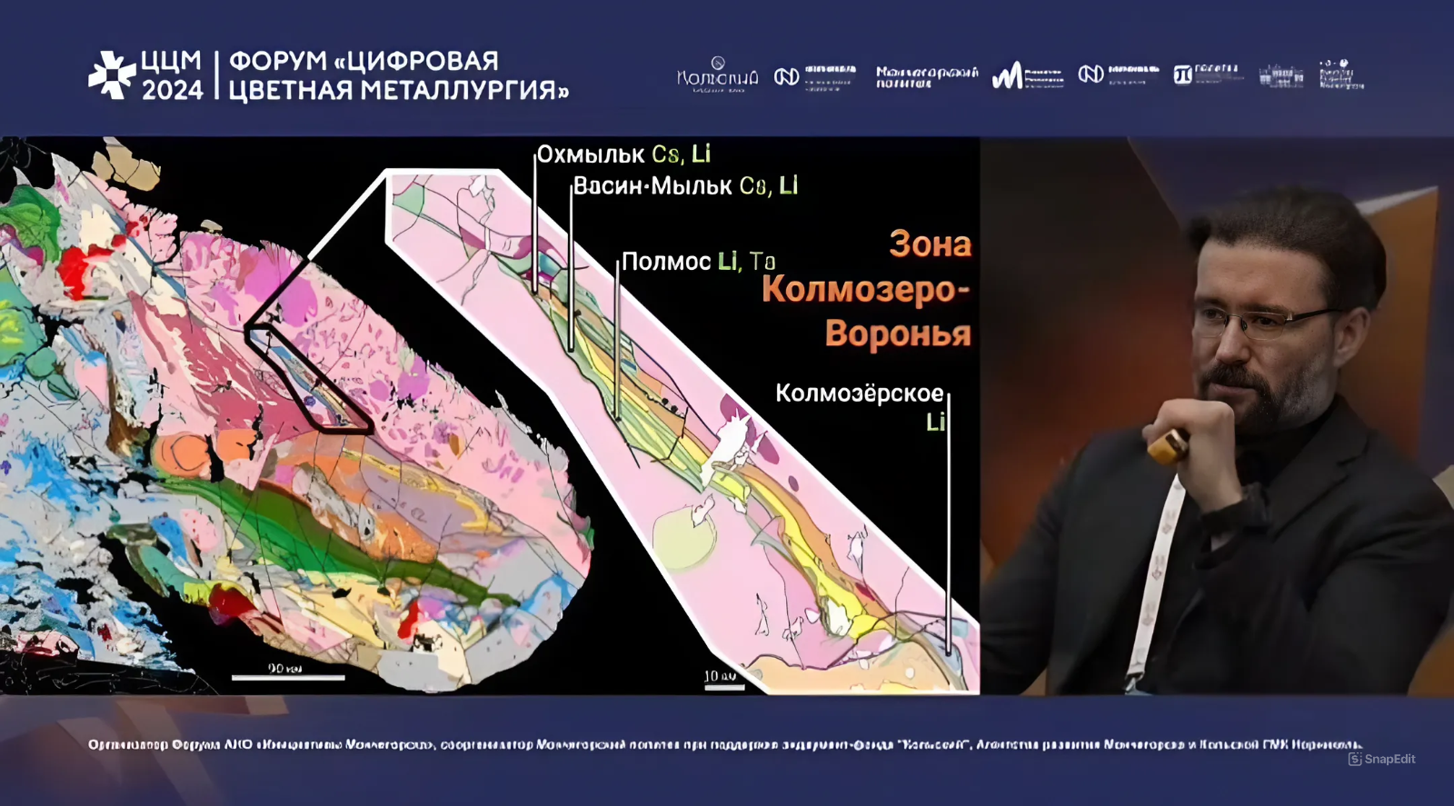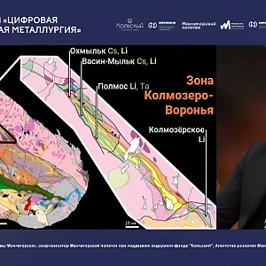 Заместитель директора Геологического института КНЦ РАН по научной работе Сергей Мудрук познакомил аудиторию с историей геологической разведки лития на Кольской земле и условиями формирования его запасов. Литию, одному из наиболее востребованных редких металлов в мире, крайне перспективному с точки зрения развития новых технологических инструментов и возможностей, был посвящен отдельный круглый стол. Сергей Владимирович объяснил, для чего человечеству необходим этот металл, почему цены на него колеблются, какие именно геологические процессы на Кольском полуострове привели к появлению литийсодержащего сырья, а также представил свою точку зрения о том, почему в России пока его не добывают и не перерабатывают. Он подробнейше рассказал в целом о Кольском регионе и конкретно о зоне Колмозеро-Воронье, где сконцентрировано большое количество комплексных месторождений редких металлов. Большинство из них были открыты сотрудниками Кольской базы академии наук, начиная с 1940-х годов. Закончил ученый свой доклад основными тезисами о том, какие процессы важно определить на сегодня – от снижения стоимости обогащения руды для получения сподуменового концентрата до разработки оптимальных схем утилизации отходов производства для минимизации воздействия на окружающую среду.