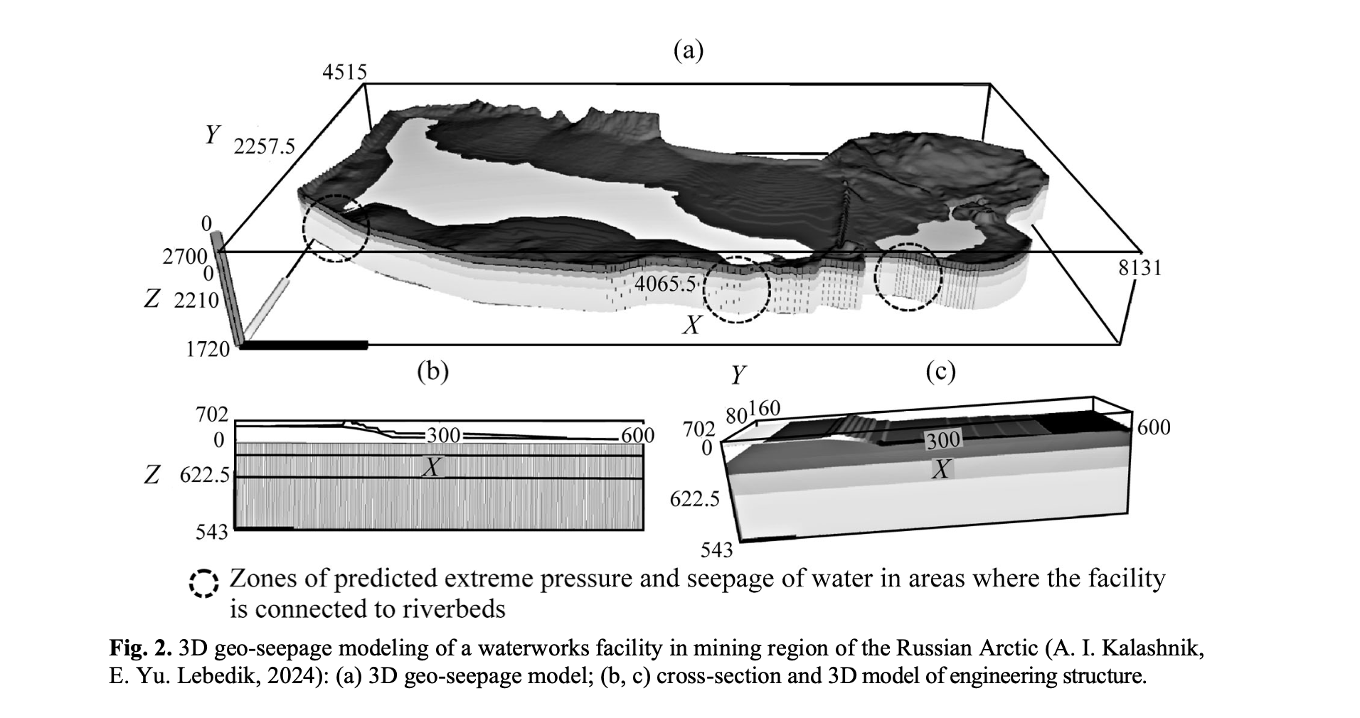 Исследование по проекту № 24-27-20013 «Космический мониторинг и оценка рисков окружающей среде горнодобывающих и гидроэнергетических комплексов Мурманской области», поддержанное Российским научным фондом, в котором принимают участие кандидат технических наук, старший научный сотрудник Михаил Мелихов, кандидат технических наук, ведущий научный сотрудник Анатолий Калашник, кандидат технических наук, ведущий научный сотрудник Сергей Остапенко и инженер второй категории Екатерина Лебедик, опубликовано в американском издании Journal of Mining Science (DOI: 10.1134/S1062739125010168). Оно направлено на разработку и апробацию комплексного подхода к дистанционному мониторингу горно-гидротехнических сооружений в Арктике с целью раннего предупреждения и повышения эффективности оценки безопасности данного типа объектов и реальных масштабов распространения техногенных рисков. Предложенная учеными методология заключается в комплексировании методов и результатов 3D-геофильтрационного моделирования, спутникового дистанционного зондирования Земли, инструментов пространственного анализа и натурных наблюдений.