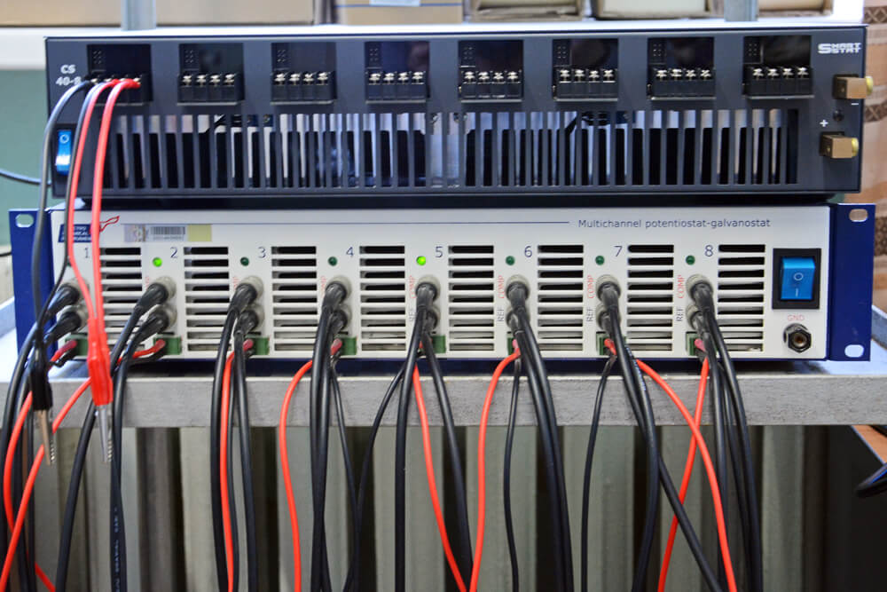 Заместитель директора Института проблем промышленной экологии Севера КНЦ РАН по научной работе Вадим Ефремов показывает оборудование в лаборатории: миксер, пресс, высокотемпературную печь, стенд с подключенными к потенциостатам-гальваностатам на первый взгляд совершенно обычными батарейками. Именно здесь результаты лабораторных исследований превращаются в готовые элементы питания.