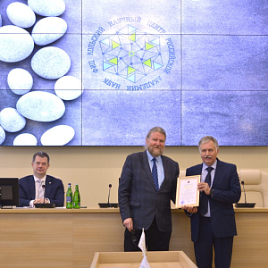 12 сентября в большом конференц-зале КНЦ РАН состоялось торжественное заседание Ученого совета Кольского научного центра, посвященное празднованию 70-летнего юбилея члена-корреспондента РАН, директора Горного института, доктора технических наук Сергея Лукичева. С приветственным словом и теплыми поздравлениями выступили генеральный директор КНЦ РАН, академик РАН, Сергей Кривовичев, члены ученого совета и коллеги по научному сообществу. Они отметили выдающуюся роль Сергея Вячеславовича в развитии горной науки и описали вехи его многолетней и плодотворной работы, а особым моментом заседания стало вручение юбиляру почетной грамоты Губернатора Мурманской области.