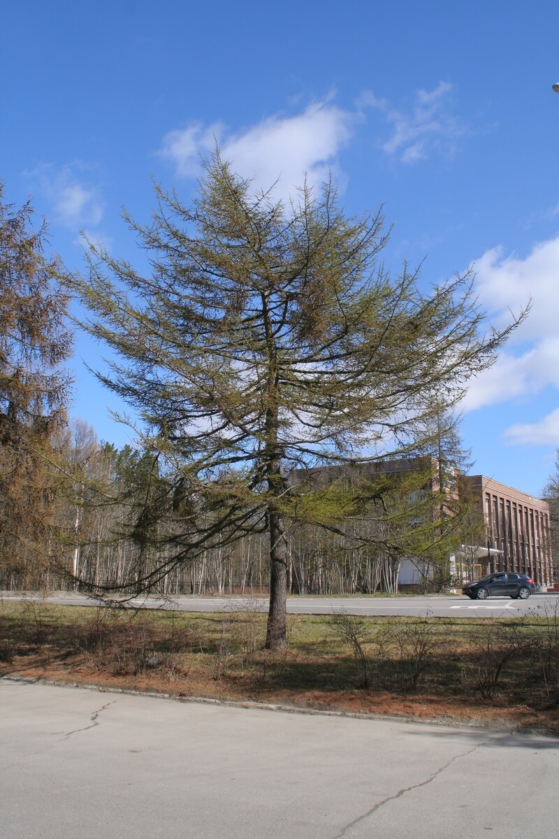 Лиственница Гмелина (Larix gmelinii) широко распространена на Дальнем Востоке и в Восточной Сибири, с севера граница распространения проходит от полуострова Таймыр до озера Байкал на юге. В зависимости от места произрастания растение может быть деревом до 30 м высотой или иметь стланиковую форму, как у карликовой березы в тундре. В Мурманской области, лиственница Гмелина – это дерево высотой до 10 м с извилистым стволом и ветвями. Наиболее декоративна весной, когда появляются молодые шишки. Их размер не превышает 1,5 см в длину и в ширину, а по форме они напоминают розочки. Появление молодой хвои начинается раньше, чем у остальных видов лиственниц. Семена не вызревают.